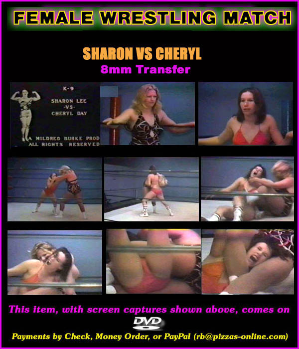 Sharon was a pro wrestler who had several matches at Mildred Burke's California Gym in the 1970's. She had matches against both women and men.